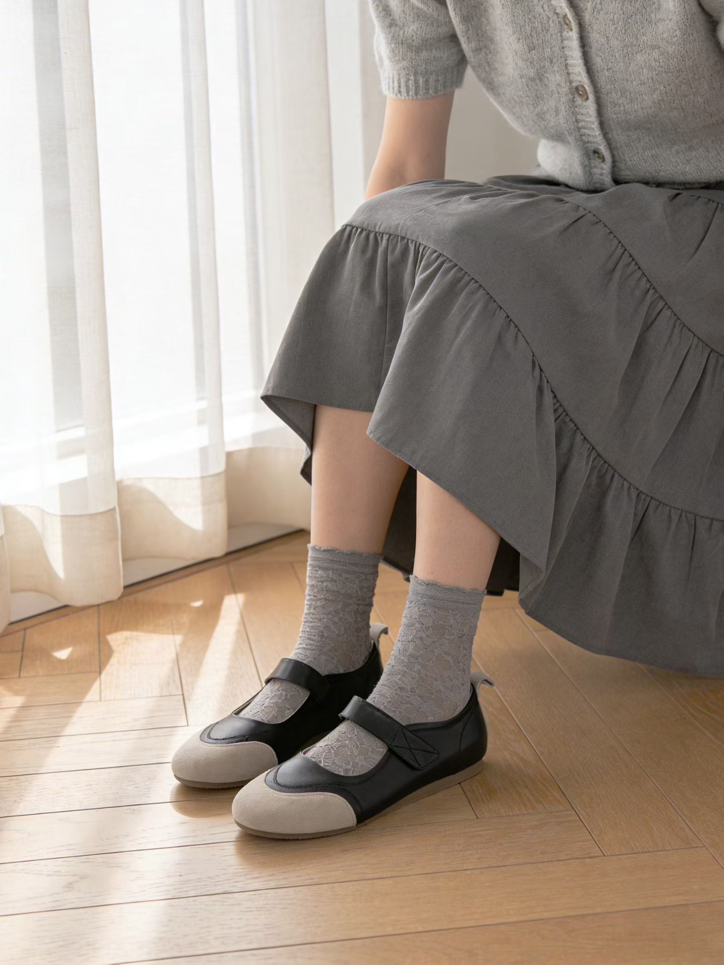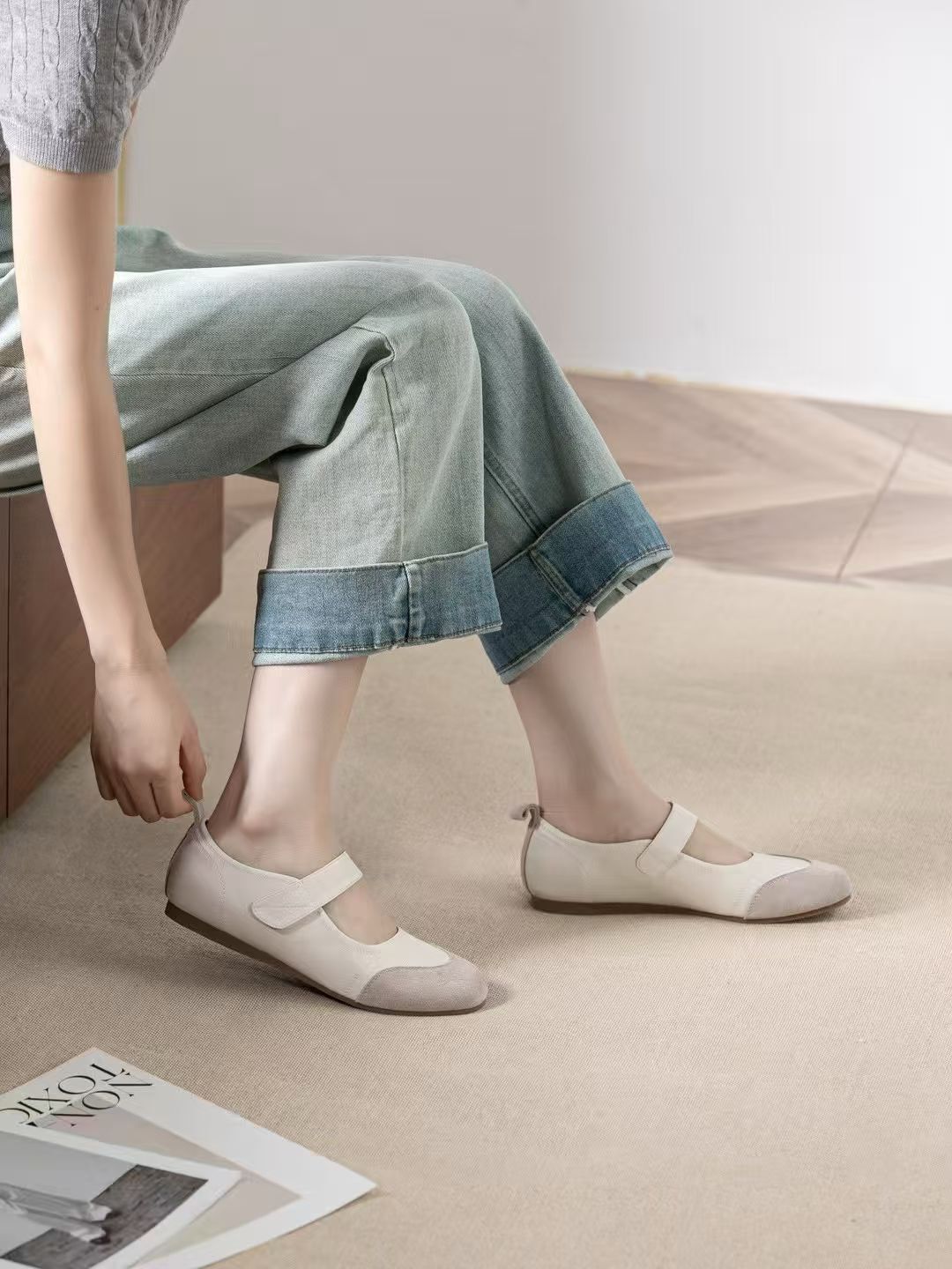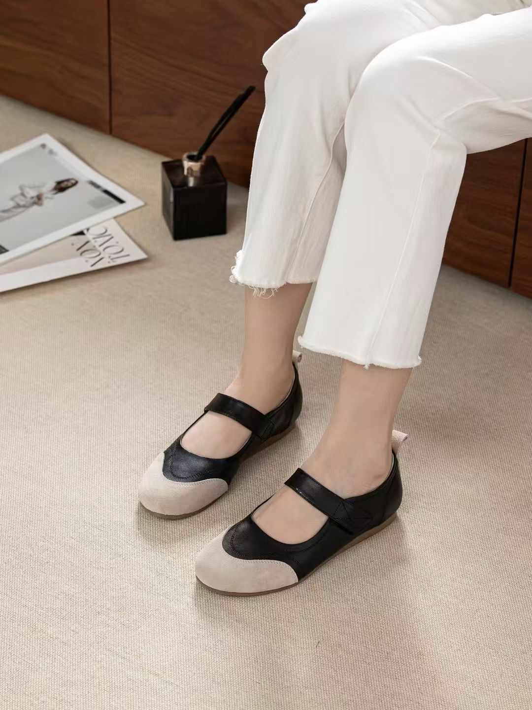 柔軟拼接真皮休閒鞋(35-41)
